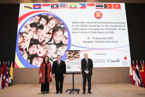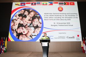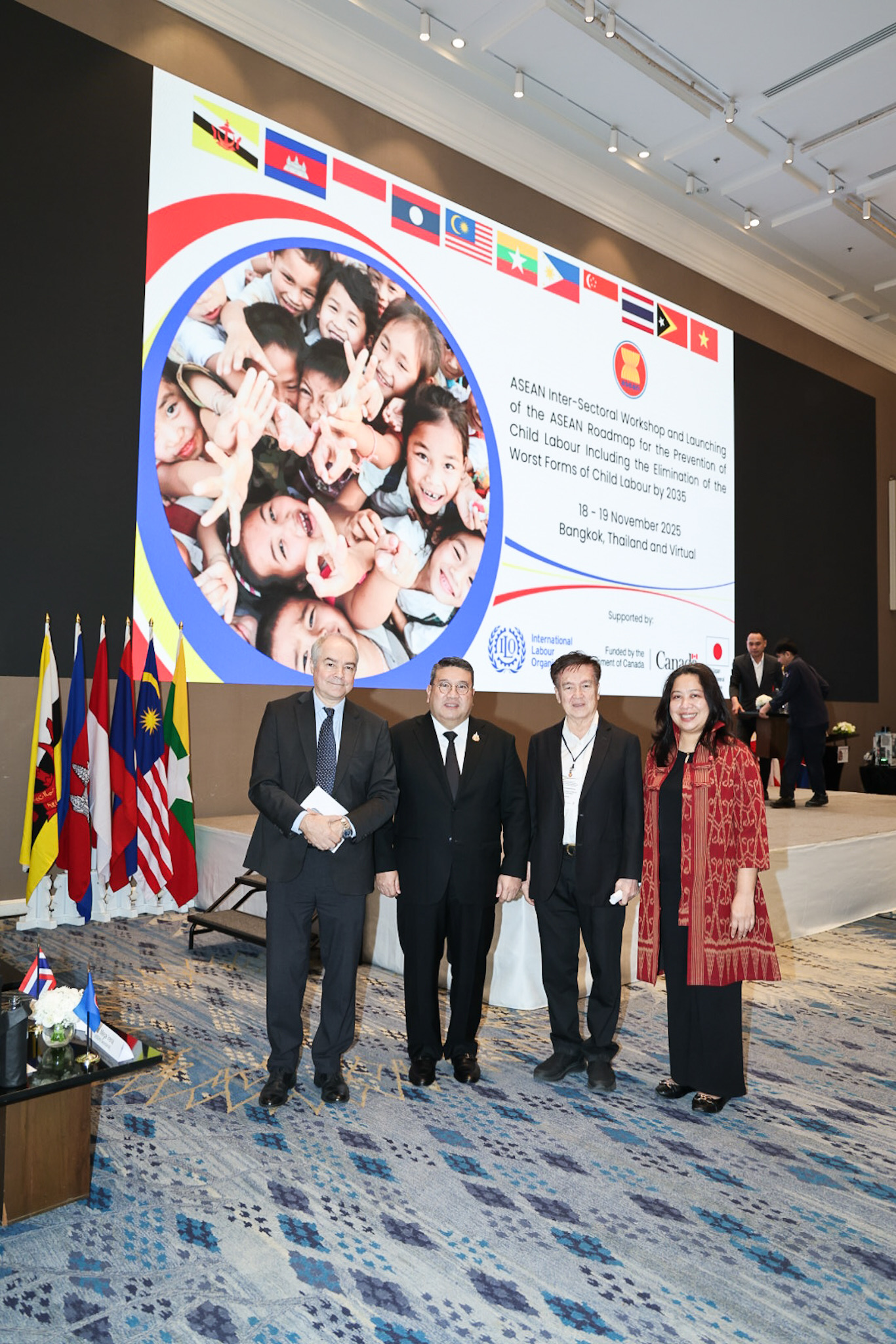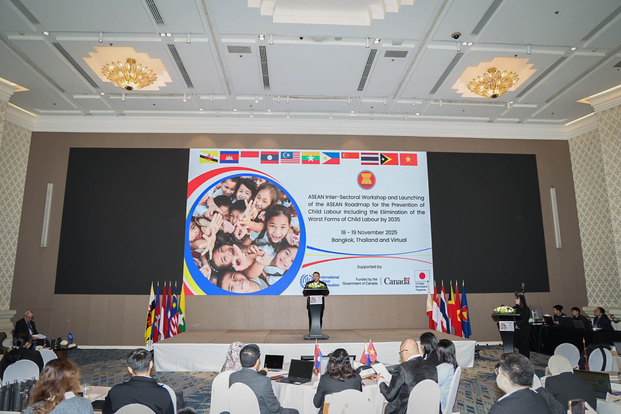 วันที่ 18 พฤศจิกายน 2568 เวลา 09.00 น. พันตำรวจโท วรรณพงษ์ คชรักษ์ ปลัดกระทรวงแรงงาน เป็นประธานเปิดการประชุมเชิงปฏิบัติการระหว่างหน่วยงานรายสาขาอาเซียนและการเปิดตัวแผนงานอาเซียนว่าด้วยการป้องกันการใช้แรงงานเด็ก รวมถึงการขจัดรูปแบบที่เลวร้ายที่สุดของการใช้แรงงานเด็กภายในปี พ.ศ. 2578 โดยมี ผู้บริหารระดับสูงกระทรวงแรงงาน หน่วยงานรายสาขาอาเซียน องค์การสหประชาชาติ อาทิ องค์การแรงงานระหว่างประเทศ (ILO), UNICEF, IOM ผู้แทนจากกระทรวงต่างๆ ร่วมด้วย ณ ห้องอินฟินิตี้ บอลรูม ชั้น G โรงแรมพูลแมน คิง เพาเวอร์ (รางน้ำ) กรุงเทพฯ
