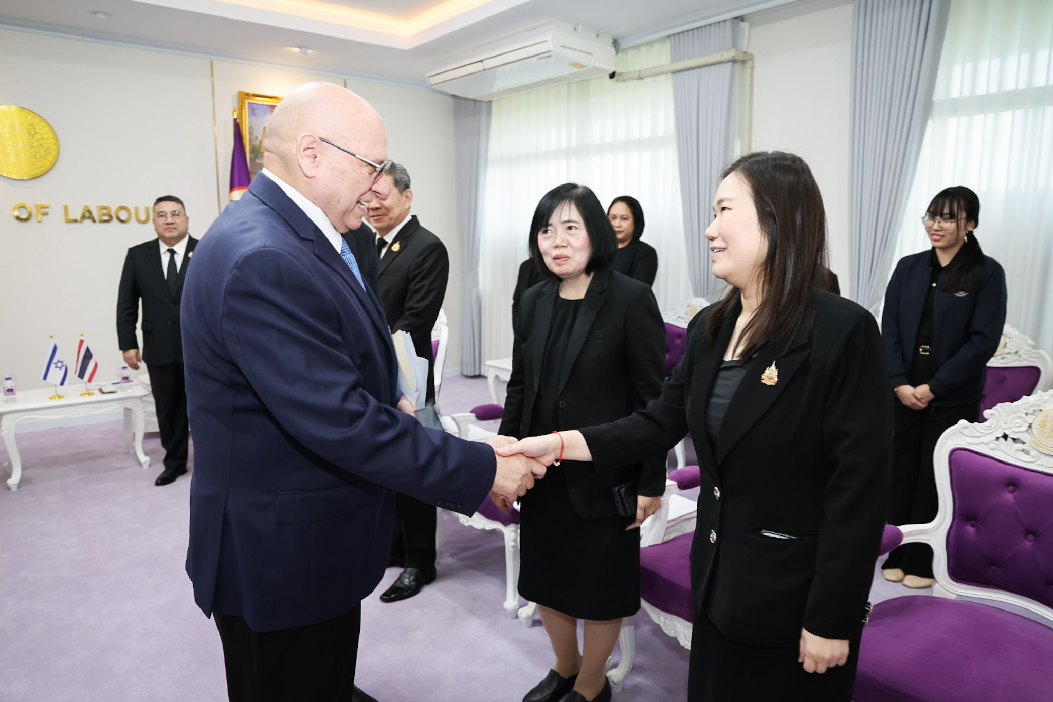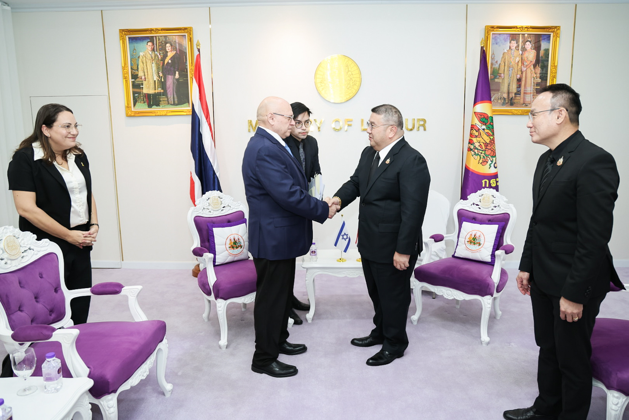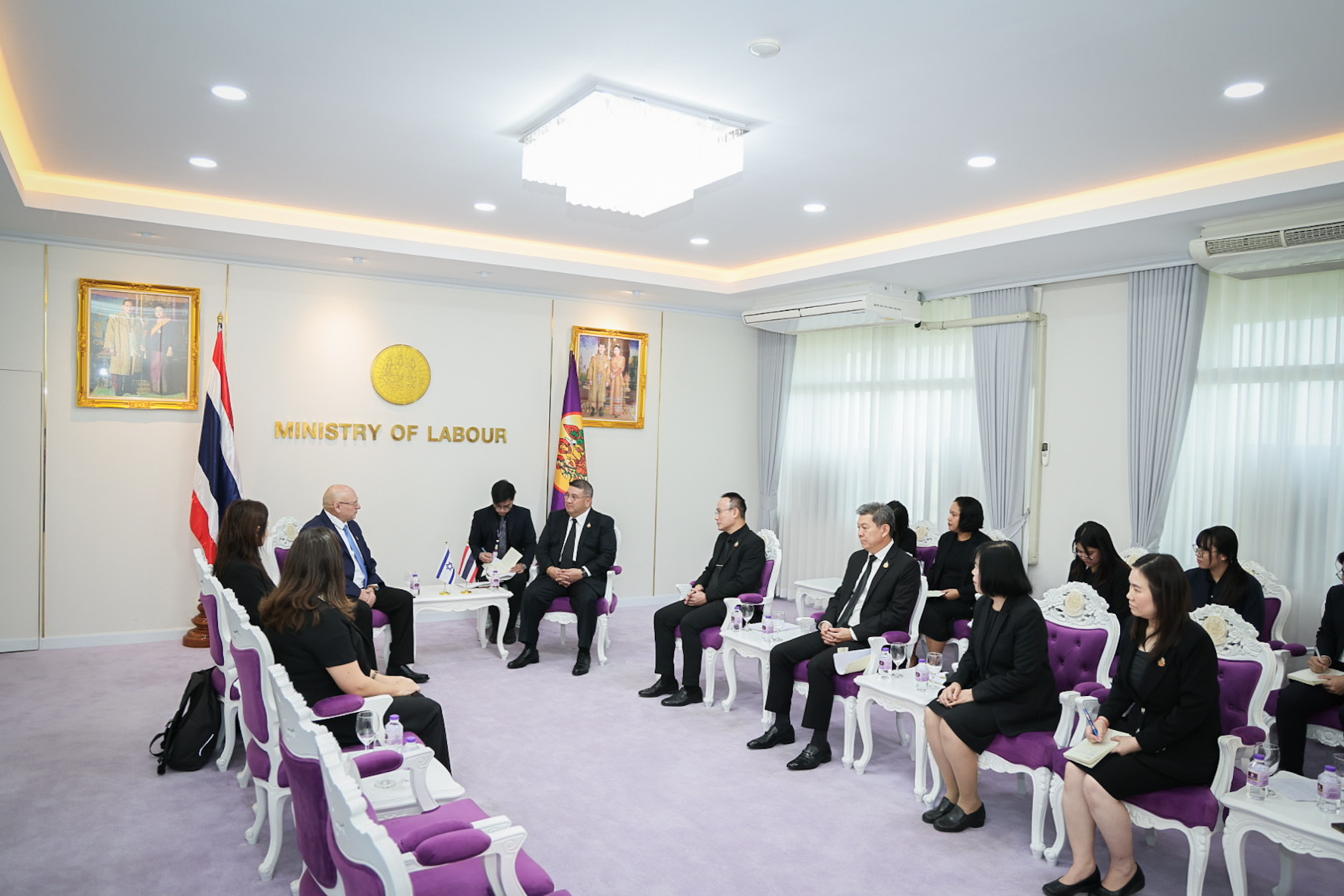 วันที่ 24 พฤศจิกายน 2568 เวลา 11.30 น. พันตำรวจโท วรรณพงษ์ คชรักษ์ ปลัดกระทรวงแรงงาน ให้การต้อนรับ นาย Eliyahu Yifrach รองปลัดกระทรวงการต่างประเทศ รัฐอิสราเอล โดยมี นายสมชาย มรกตศรีวรรณ ผู้ตรวจราชการกระทรวงแรงงาน รักษาราชการแทน อธิบดีกรมการจัดหางาน และ นายศักดินาถ สนธิศักดิ์โยธิน ผู้ช่วยปลัดกระทรวงแรงงาน เข้าร่วมด้วย ณ ห้องประชุมปลัดกระทรวงแรงงาน ชั้น 7 อาคารกระทรวงแรงงาน