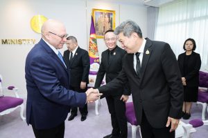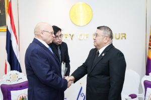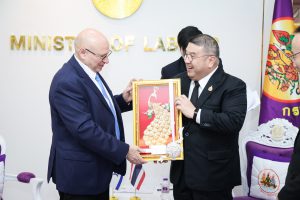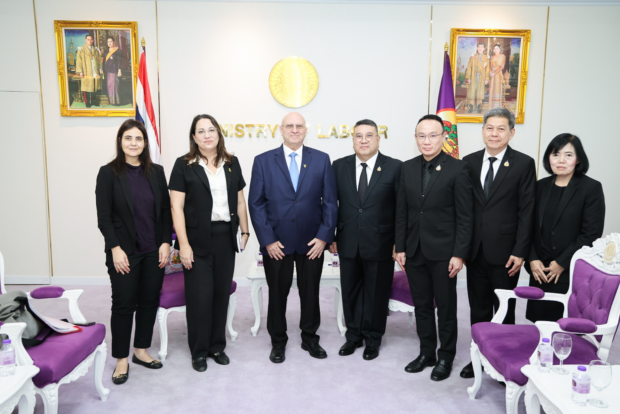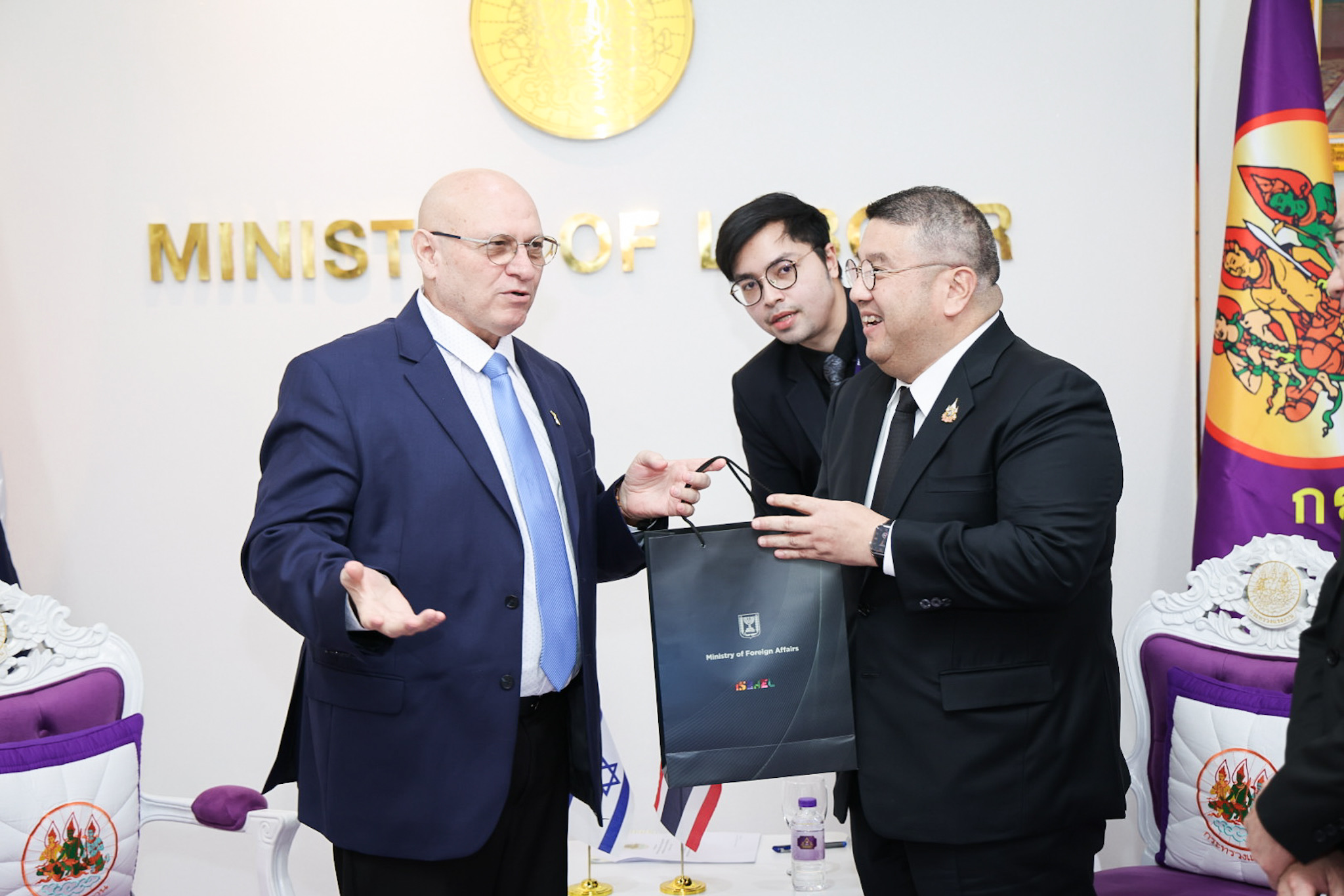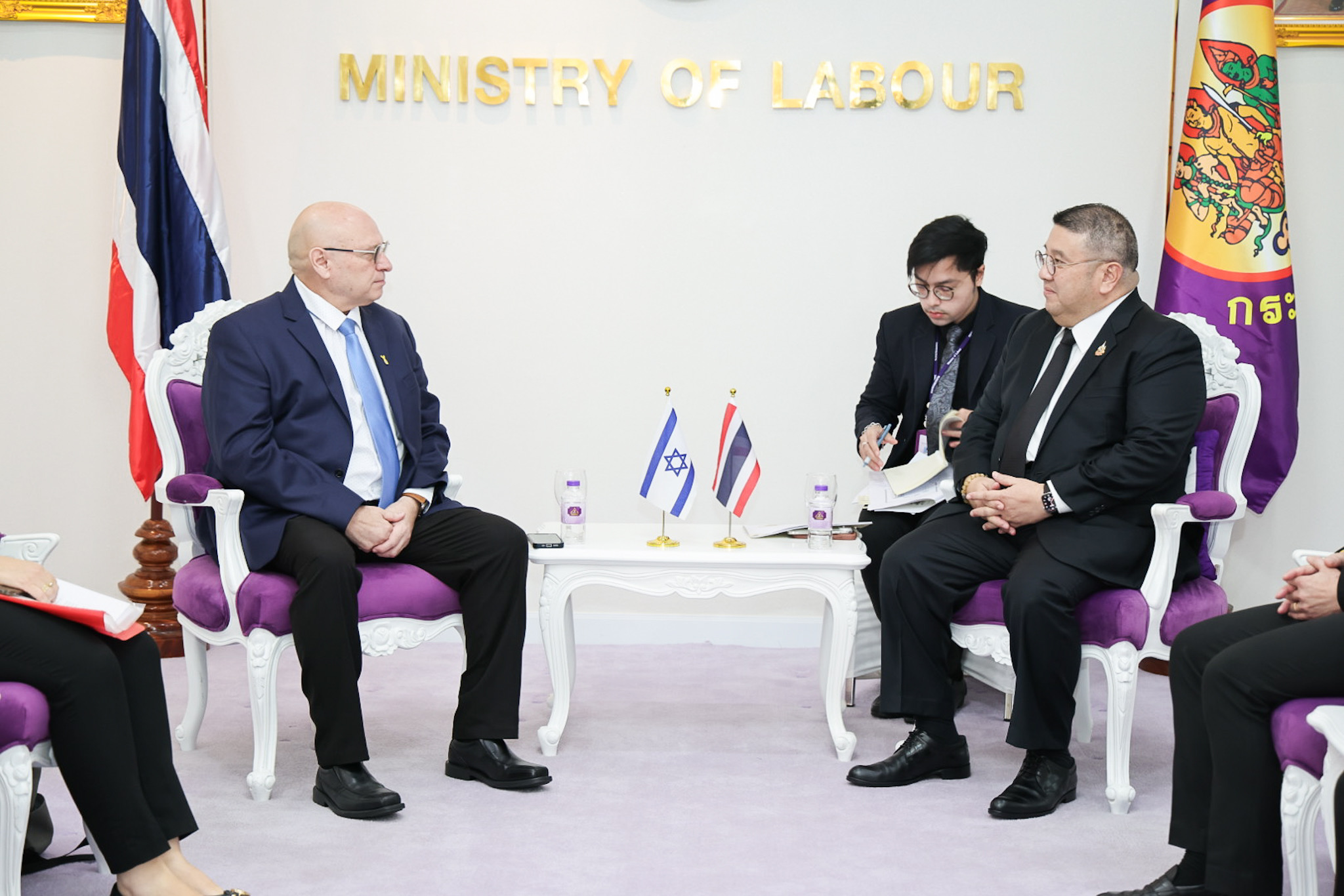 วันที่ 24 พฤศจิกายน 2568 เวลา 11.30 น. พันตำรวจโท วรรณพงษ์ คชรักษ์ ปลัดกระทรวงแรงงาน ให้การต้อนรับ นาย Eliyahu Yifrach รองปลัดกระทรวงการต่างประเทศ รัฐอิสราเอล โดยมี นายสมชาย มรกตศรีวรรณ ผู้ตรวจราชการกระทรวงแรงงาน รักษาราชการแทน อธิบดีกรมการจัดหางาน และ นายศักดินาถ สนธิศักดิ์โยธิน ผู้ช่วยปลัดกระทรวงแรงงาน เข้าร่วมด้วย ณ ห้องประชุมปลัดกระทรวงแรงงาน ชั้น 7 อาคารกระทรวงแรงงาน