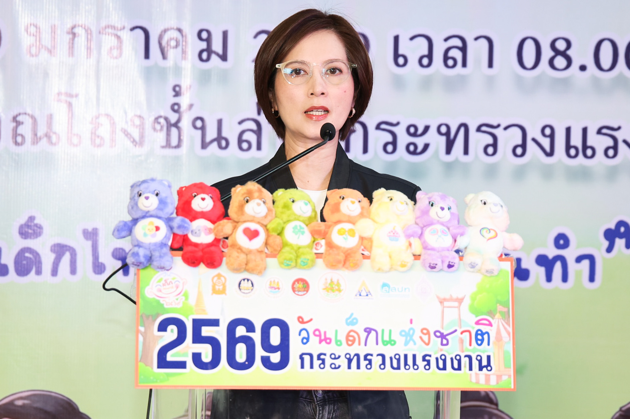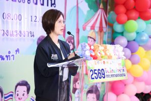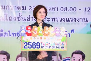 นางสาวตรีนุช เทียนทอง รัฐมนตรีว่าการกระทรวงแรงงาน กล่าวว่า ยินดีเป็นอย่างยิ่งที่ได้มาร่วมงานวันเด็กแห่งชาติของกระทรวงแรงงาน ประจำปี 2569 และขอต้อนรับเด็กและเยาวชน ผู้ปกครอง ผู้ประกอบการ ที่มาร่วมกิจกรรมในวันนี้ ซึ่งในในปีนี้รัฐบาลได้ประกาศคำขวัญวันเด็กแห่งชาติ ประจำปี 2569 คือ “รักชาติไทย ใส่ใจโลก” เพื่อปลูกฝังให้เด็กและเยาวชนเติบโตเป็นพลเมืองที่มีคุณภาพ มีความภาคภูมิใจในความเป็นไทย ควบคู่กับการตระหนักถึงบทบาทของตนเองในฐานะพลเมืองโลกที่มีความรับผิดชอบต่อสังคมและสิ่งแวดล้อม