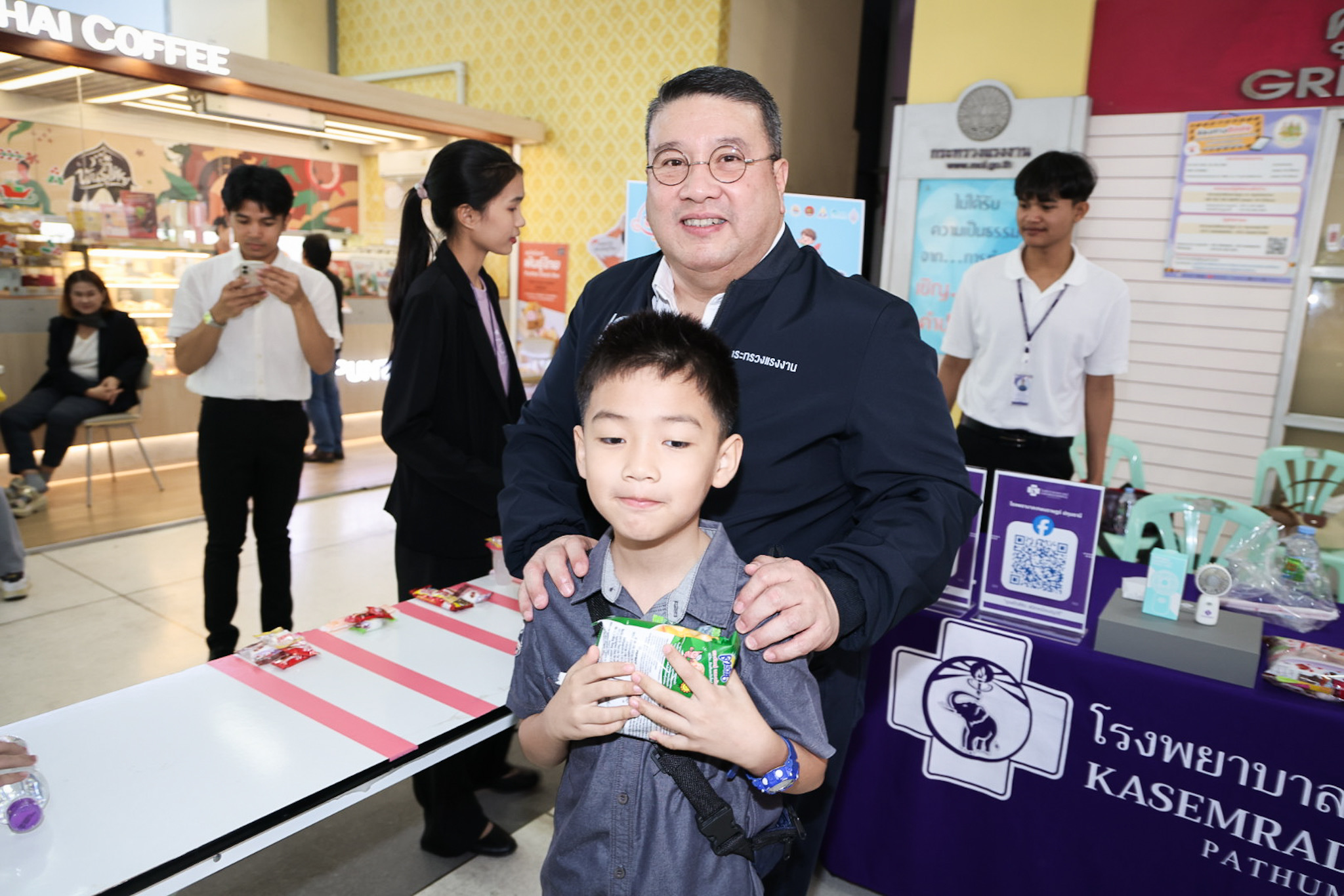 จากนั้น รัฐมนตรีว่าการกระทรวงแรงงาน พร้อมคณะ ได้เยี่ยมชมบูธกิจกรรมของหน่วยงานในสังกัดกระทรวงแรงงานและสถานประกอบการ โดยกิจกรรมภายในงานแบ่งออกเป็นหลายโซน ได้แก่ โซน A กิจกรรมบนเวทีกลาง การมอบทุนการศึกษา รถจักรยาน และการแจกของรางวัล โซน B และ C กิจกรรมเรียนรู้อาชีพเสมือนจริงผ่านเทคโนโลยี Virtual Reality การฝึกทักษะดิจิทัลและ AI กิจกรรมสร้างสรรค์ด้านอาชีพและความปลอดภัยในการทำงาน พร้อมเกมสนุกและของรางวัลมากมาย โซน D บริการตรวจสุขภาพและตรวจฟันฟรี จากโรงพยาบาลในเครือข่ายสำนักงานประกันสังคม และโซน E บริการอาหารและเครื่องดื่มสำหรับเด็กและผู้เข้าร่วมงานทุกคน