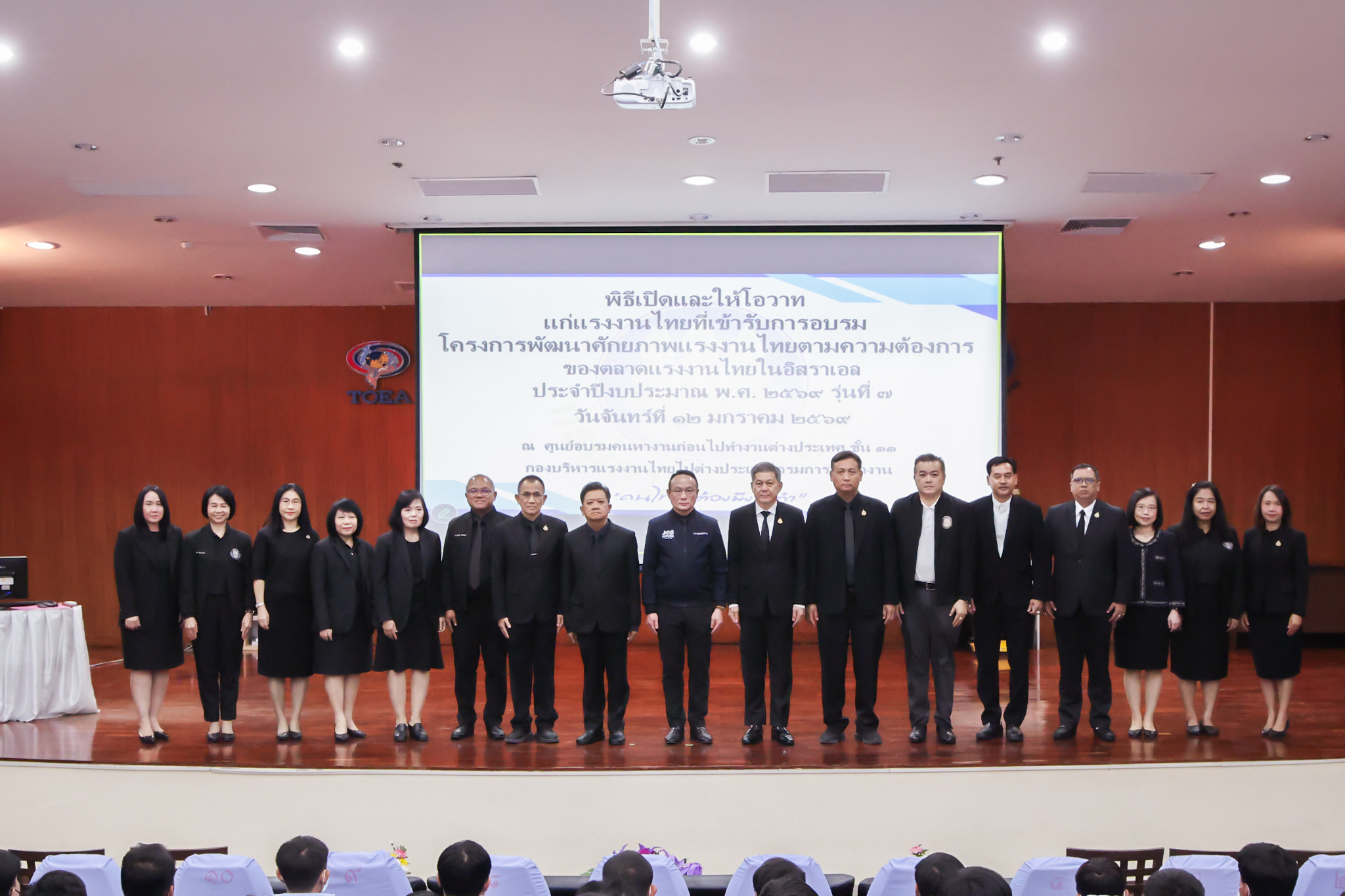 วันที่ 12 มกราคม 2569 เวลา 09.30 น. นางสาวตรีนุช เทียนทอง รัฐมนตรีว่าการกระทรวงแรงงาน มอบหมายให้ นายสมชาย มรกตศรีวรรณ อธิบดีกรมการจัดหางาน เป็นประธานในพิธีเปิดและให้โอวาทแก่แรงงานไทยที่เข้ารับการฝึกอบรมโครงการพัฒนาศักยภาพแรงงานไทยความต้องการของตลาดแรงงานไทยในอิสราเอล ประจำปีงบประมาณ พ.ศ. 2569 รุ่นที่ 7 ในการนี้ พันตำรวจโท วรรณพงษ์ คชรักษ์ ปลัดกระทรวงแรงงาน มอบหมายให้ นายศักดินาถ สนธิศักดิ์โยธิน ผู้ช่วยปลัดกระทรวงแรงงาน เข้าร่วมด้วย ณ ศูนย์อบรมคนหางานก่อนไปทำงานต่างประเทศ ชั้น 11 อาคารสำนักงานประกันสังคม กรุงเทพมหานครพื้นที่ 3 กระทรวงแรงงาน