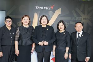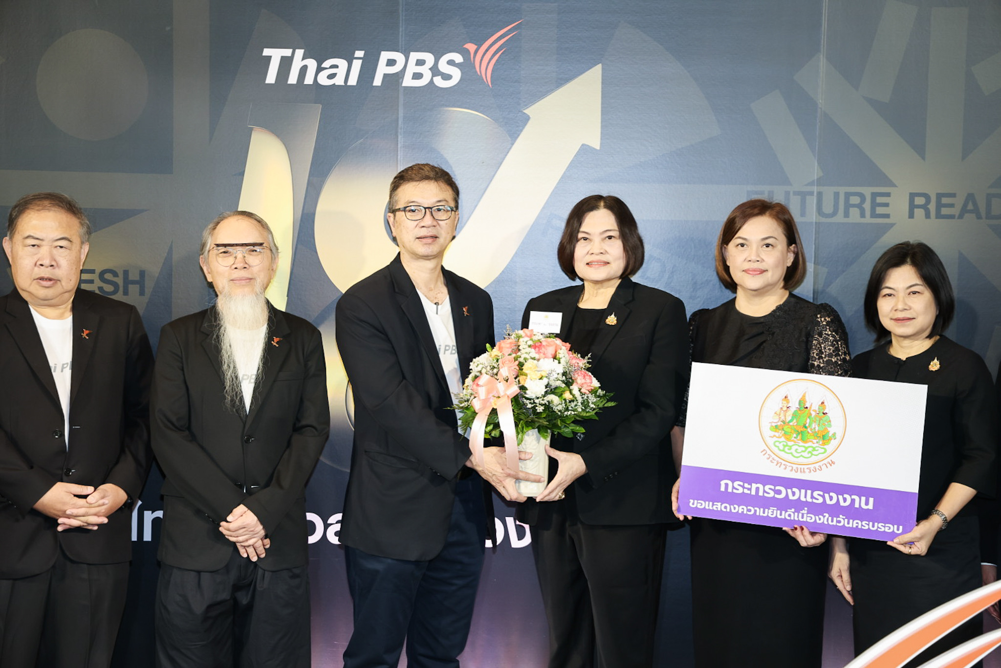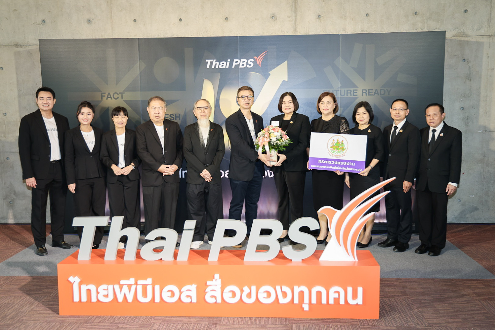 วันที่ 15 มกราคม 2569 เวลา 10.30 น. พันตำรวจโท วรรณพงษ์ คชรักษ์ ปลัดกระทรวงแรงงาน มอบหมายให้ นางสาวบุณยวีร์ ไขว้พันธุ์ หัวหน้าผู้ตรวจราชการกระทรวงแรงงาน นำคณะผู้บริหารกระทรวงแรงงาน ร่วมแสดงความยินดีเนื่องในโอกาสครบรอบ 18 ปี ไทยพีบีเอส และร่วมบริจาคสมทบทุน มูลนิธิไทยพีบีเอส เพื่อแสดงความขอบคุณที่ไทยพีบีเอสให้ความอนุเคราะห์ในการประชาสัมพันธ์ข่าวของกระทรวงแรงงานด้วยดีตลอดมา โดยมี คุณพิเศษ จียาศักดิ์ รองผู้อำนวยการ ส.ส.ท. ด้านบริหาร และคณะ เป็นผู้รับมอบ และร่วมให้การต้อนรับ ณ คอนเวนชันฮอลล์ ชั้น 2 อาคารศูนย์การเรียนรู้ ไทยพีบีเอส ถ.วิภาวดีรังสิต