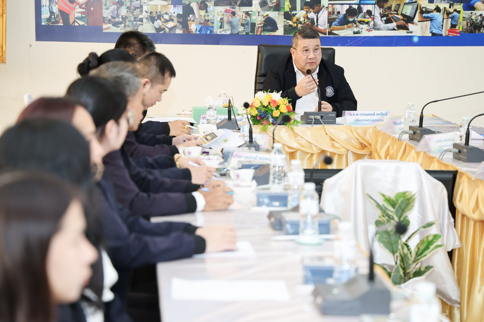 วันที่ 23 มกราคม 2569 เวลา 14.00 น. พันตำรวจโท วรรณพงษ์ คชรักษ์ ปลัดกระทรวงแรงงาน เป็นประธานการประชุมและมอบแนวคิดในการปฏิบัติงานให้แก่หัวหน้าส่วนราชการในสังกัดกระทรวงแรงงานจังหวัดอุบลราชธานี พร้อมพบปะและมอบนโยบายการปฏิบัติงานให้แก่เครือข่ายด้านแรงงาน อาสาสมัครแรงงาน จำนวน 20 คน และบัณฑิตแรงงาน จำนวน 7 คน โดยมี ว่าที่ร้อยตรีกรกฎ ประเสริฐวงษ์ รองผู้ว่าราชการจังหวัดอุบลราชธานี กล่าวต้อนรับ ว่าที่ร้อยตรี สมศักดิ์ พรหมดำ ผู้ตรวจราชการกระทรวงแรงงาน เข้าร่วมประชุมด้วย ณ ห้องประชุมปทุมทิพย์ สถาบันพัฒนาฝีมือแรงงาน 7 อุบลราชธานี