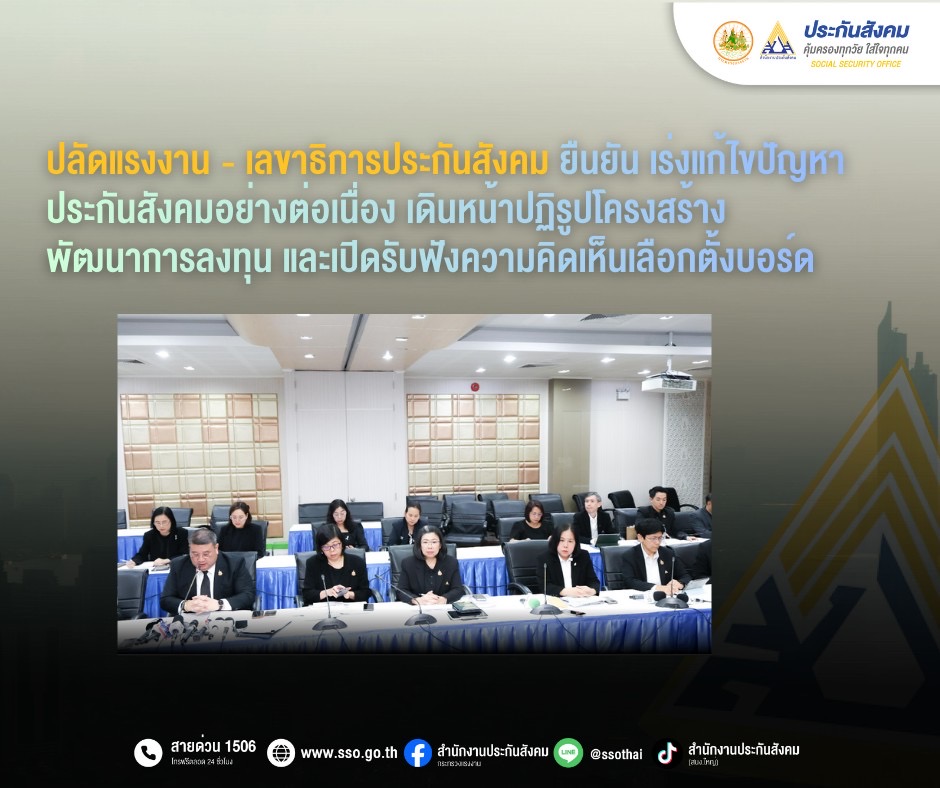 ทั้งนี้ สำนักงานประกันสังคมยืนยันจะเร่งดำเนินการทุกมาตรการอย่างโปร่งใส ตรวจสอบได้ และมุ่งประโยชน์สูงสุดของผู้ประกันตน เพื่อสร้างความมั่นคงและความเชื่อมั่นต่อระบบประกันสังคมอย่างยั่งยืนในระยะยาว