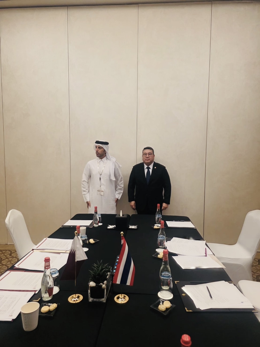 เมื่อวันที่ 31 มกราคม 2569 ตามเวลาท้องถิ่นของเมืองดูไบ พันตำรวจโท วรรณพงษ์ คชรักษ์ ปลัดกระทรวงแรงงาน พร้อมด้วย นางสาวสดุดี กิตติสุวรรณ ผู้อำนวยการสำนักประสานความร่วมมือระหว่างประเทศ นางอลิสา สุภาพ อัครราชทูตที่ปรึกษา (ฝ่ายแรงงาน) ประจำสถานเอกอัครราชทูต ณ กรุงอาบูดาบี สหรัฐอาหรับเอมิเรตส์และคณะ ร่วมประชุมหารือทวิภาคีกับนายฮาหมัด ฟาราจ ฮาหมัด ดัลมูก ผู้ช่วยปลัดกระทรวงแรงงาน ฝ่ายกิจการแรงงานต่างด้าว กระทรวงแรงงานแห่งรัฐกาตาร์ (Mr Hamad Faraj Hamad Dalmouk), Assistant Undersecretary for Migrant Labour Affairs – the Ministry of Labour, Qatar ณ โรงแรม Intercontinental Dubai, Festival City นครดูไบ สหรัฐอาหรับเอมิเรตส์