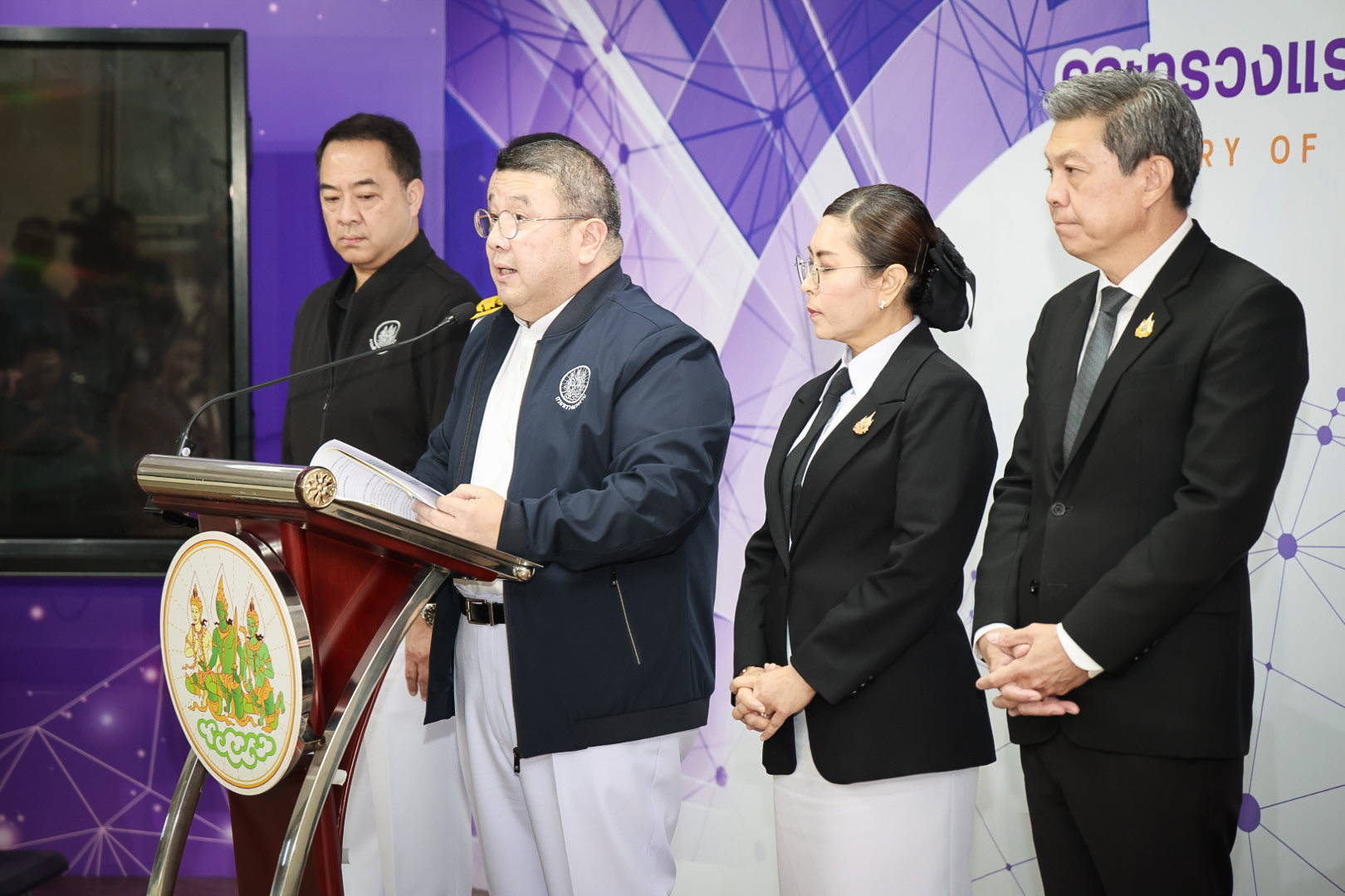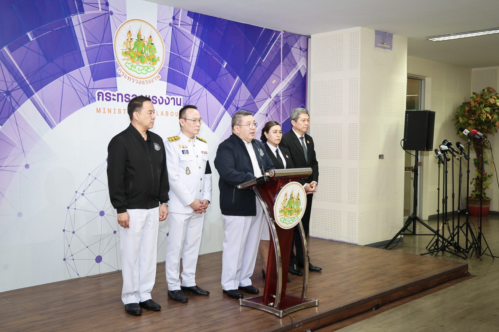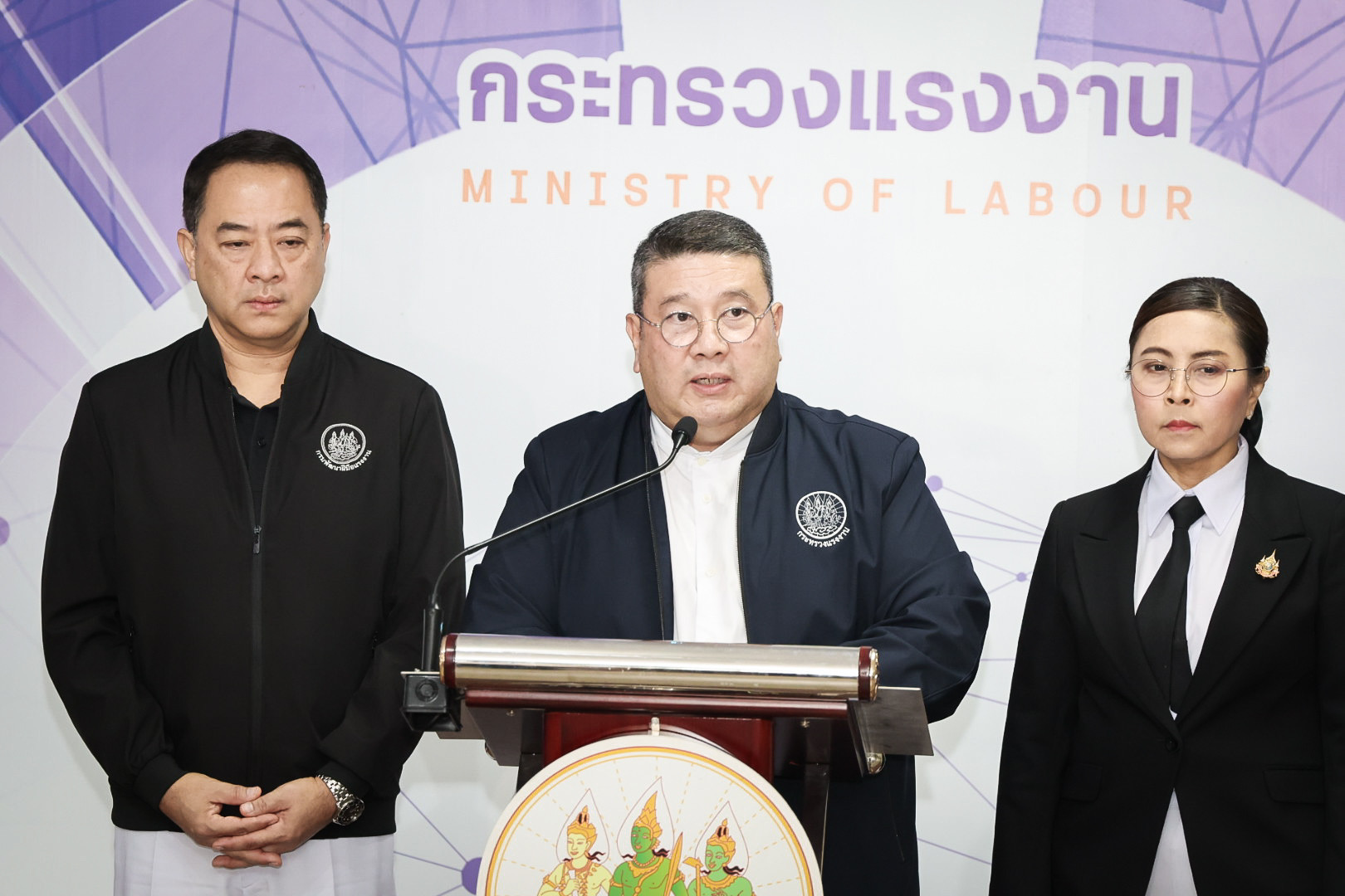 วันที่ 2 มีนาคม 2569 พันตำรวจโท วรรณพงษ์ คชรักษ์ ปลัดกระทรวงแรงงาน เปิดเผยภายหลังการประชุมคณะกรรมการศูนย์ช่วยเหลือประสานงานติดตามสถานการณ์ความไม่สงบในภูมิภาคตะวันออกกลางเพื่อติดตามสถานการณ์และกำหนดมาตรการรองรับช่วยเหลือแรงงานไทยที่ไปทำงานในภูมิภาคตะวันออกกลางหากสถานการณ์รุนแรง โดยมี นางสาวบุปผา เรืองสุด รองปลัดกระทรวงแรงงาน นายสมชาย มรกตศรีวรรณ อธิบดีกรมการจัดหางาน นายสมาสภ์ ปัทมะสุคนธ์ อธิบดีกรมพัฒนาฝีมือแรงงาน นายศักดินาถ สนธิศักดิ์โยธิน ผู้ช่วยปลัดกระทรวงแรงงาน ร่วมด้วย ณ ห้องแถลงข่าว ชั้น 5 อาคารกระทรวงแรงงาน