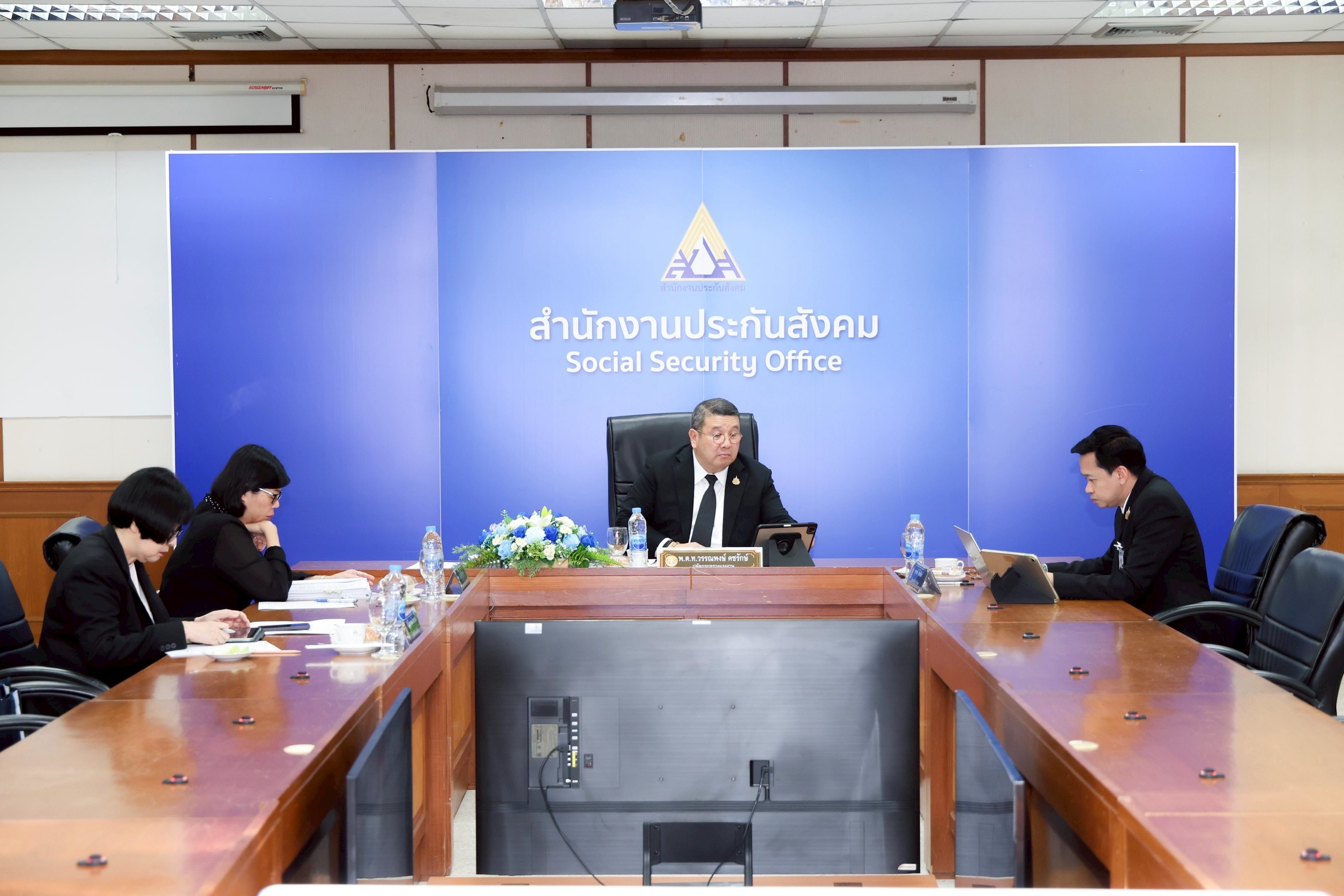วันที่ 9 มีนาคม 2569 เวลา 13.30 น. พันตำรวจโท วรรณพงษ์ คชรักษ์ ปลัดกระทรวงแรงงาน เป็นประธานการประชุมคณะที่ปรึกษาและคณะทำงานศึกษาโครงสร้างการปฏิรูปสำนักงานประกันสังคม ครั้งที่ 3/2569 เพื่อขับเคลื่อนการปรับปรุงโครงสร้างองค์กรให้มีประสิทธิภาพทัดเทียมมาตรฐานสากล โดยมี นางสาวกาญจนา พูลแก้ว เลขาธิการสำนักงานประกันสังคม และ หน่วยงานที่เกี่ยวข้อง เข้าร่วมประชุมด้วย ณ ห้องประชุม ชั้น 3 อาคารอเนกประสงค์ สำนักงานประกันสังคม และการประชุมผ่านระบบออนไลน์