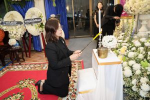วันที่ 26 มีนาคม 2569 เวลา 19.00 น. นางสาวบุปผา เรืองสุด รองปลัดกระทรวงแรงงาน ร่วมพิธีบำเพ็ญกุศลสวดพระอภิธรรมศพคุณแม่ประภาศรี ไพศาลนันท์ มารดานางเธียรรัตน์ นะวะมะวัฒน์ อดีตรองปลัดกระทรวงแรงงาน ได้ถึงแก่กรรม โดยมี นายสุชาติ ชมกลิ่น รองนายกรัฐมนตรีและรัฐมนตรีว่าการกระทรวงทรัพยากรธรรมชาติและสิ่งแวดล้อม เป็นประธานในพิธี บุตรครอบครัว และญาติพี่น้อง ร่วมพิธีบำเพ็ญกุศลไว้อาลัย ณ ศาลา 4 วัดสัตตนารถปริวัตรวรวิหาร อำเภอเมืองราชบุรี จังหวัดราชบุรี