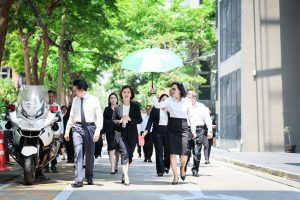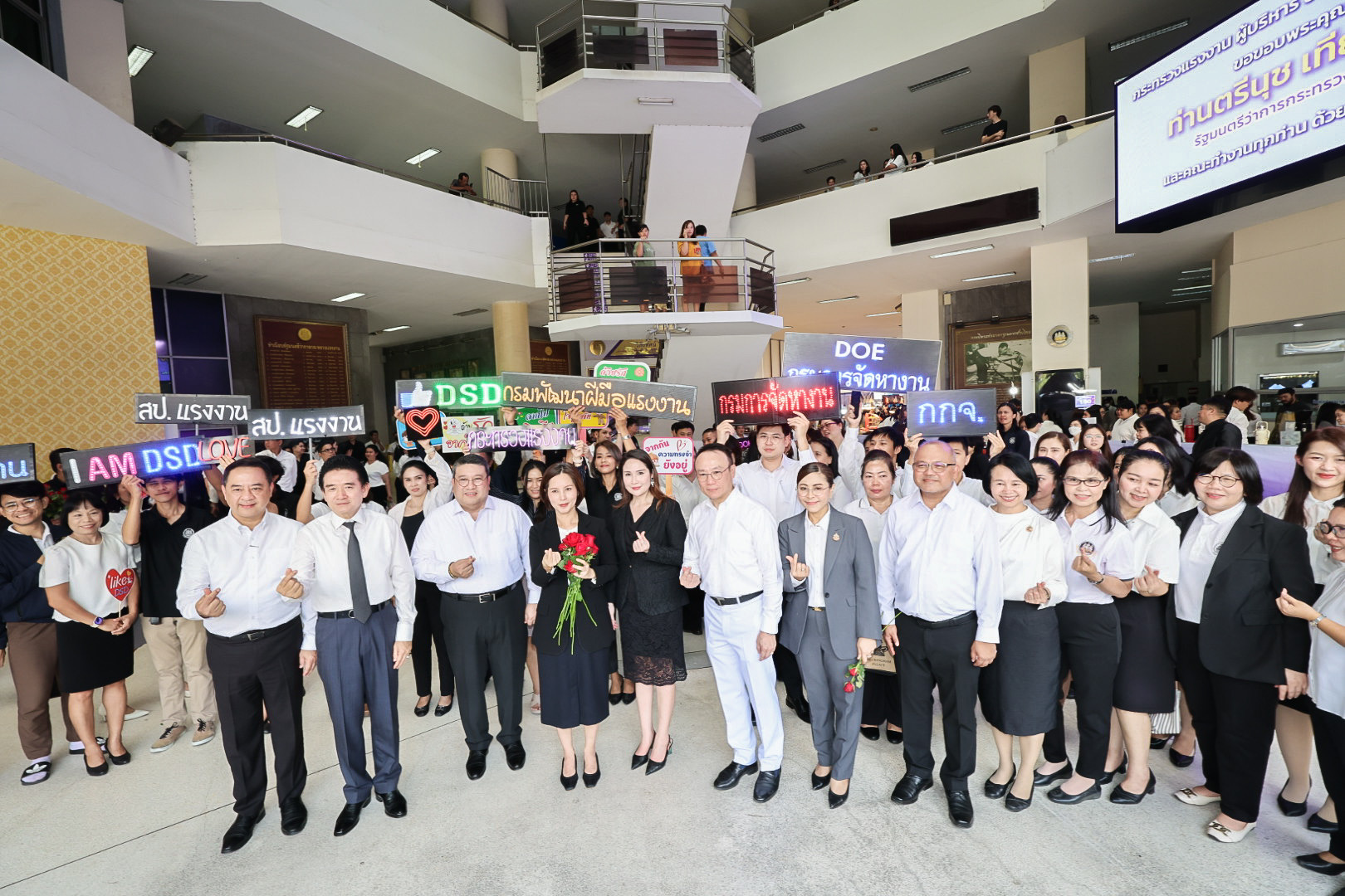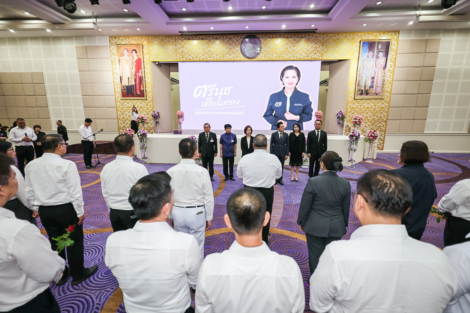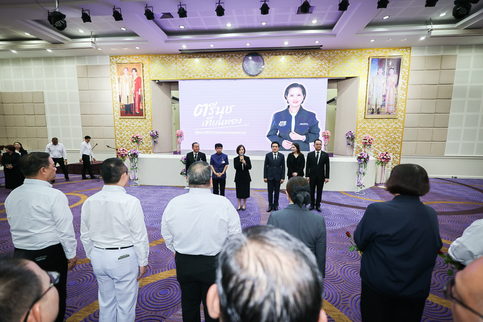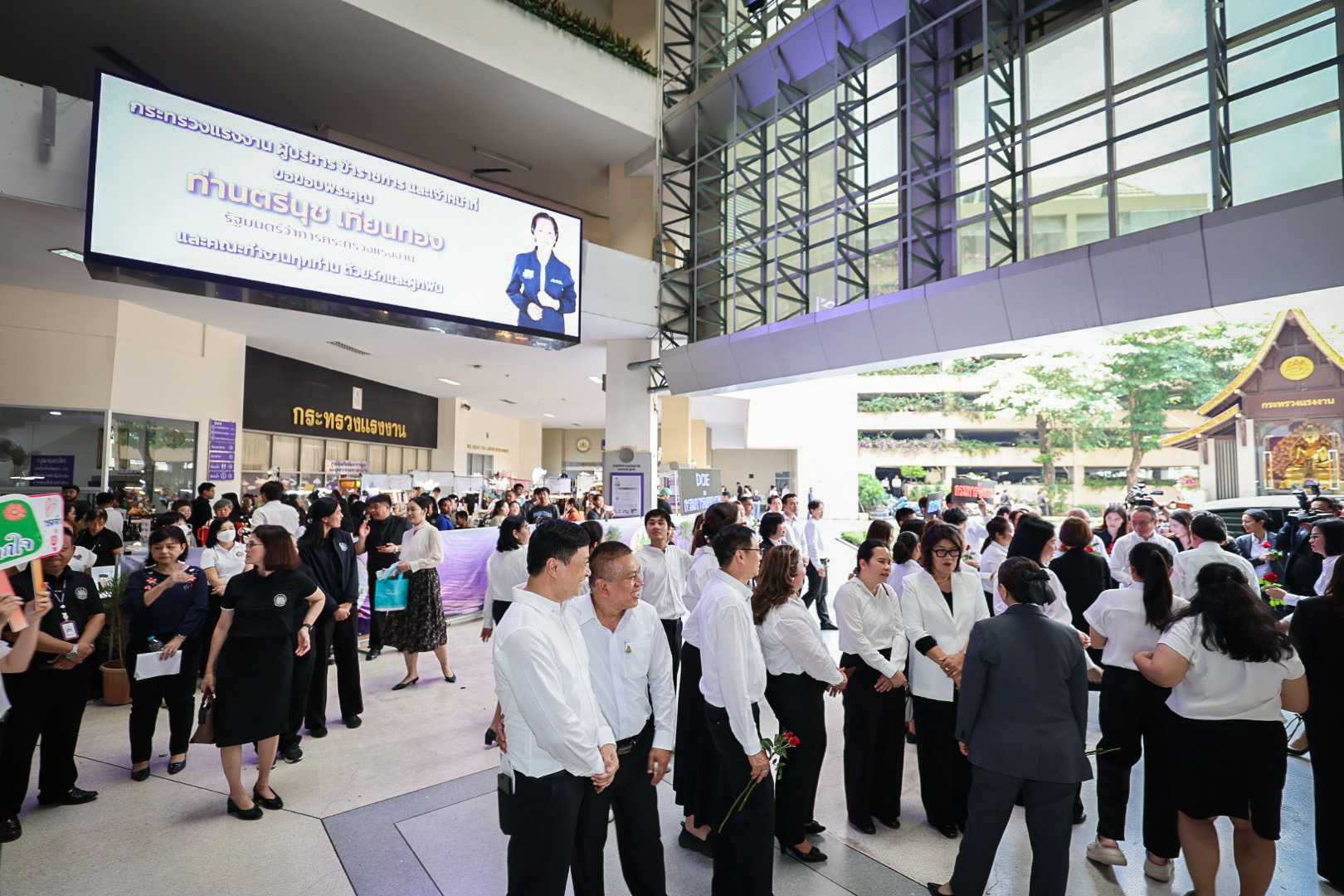 วันที่ 1 เมษายน 2569 เวลา 10.30 น. นางสาวตรีนุช เทียนทอง อดีตรัฐมนตรีว่าการกระทรวงแรงงาน เดินทางเข้ากระทรวง เพื่อสักการะสิ่งศักดิ์สิทธิ์ประจำกระทรวงแรงงาน ประกอบด้วย พระพุทธสุทธิธรรมบพิตร พระพุทธชินราช ศาลพ่อปู่ชัยมงคล ศาลท้าวมหาพรหมเทวฤทธิ์ ศาลพ่อปู่ชินพรหมมา เนื่องในโอกาสอำลาตำแหน่ง โดยมี พันตำรวจโท วรรณพงษ์ คชรักษ์ ปลัดกระทรวงแรงงาน นางสาวบุปผา เรืองสุด รองปลัดกระทรวงแรงงาน นางสาวบุณยวีร์ ไขว้พันธุ์ หัวหน้าผู้ตรวจราชการกระทรวงแรงงาน ว่าที่ร้อยตรี สมศักดิ์ พรหมดำ ผู้ตรวจราชการกระทรวงแรงงาน นายสิบหมื่นชัย โพธิสินธุ์ ผู้ตรวจราชการกระทรวงแรงงาน นายณัฐวุฒิ ภัทรประยูร ที่ปรึกษาวิชาการแรงงาน ผู้บริหารระดับสูงกระทรวงแรงงาน ข้าราชการ เจ้าหน้าที่ จากทุกหน่วยงานในสังกัดกระทรวงแรงงาน ร่วมมอบดอกไม้เพื่อแสดงความขอบคุณและให้กำลังใจ