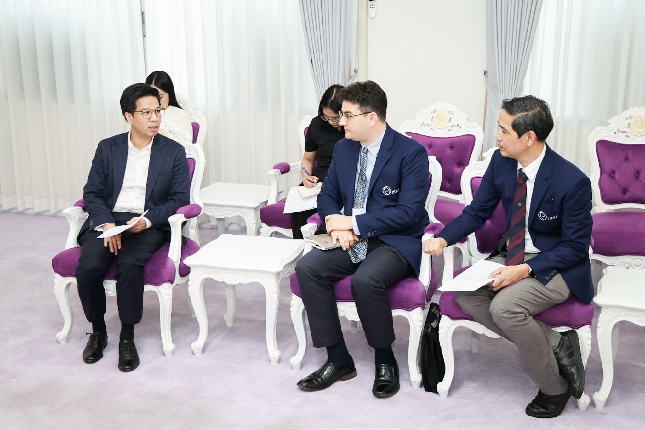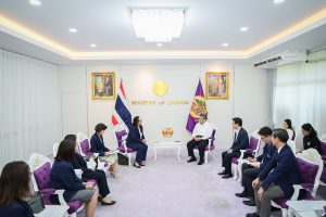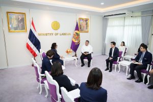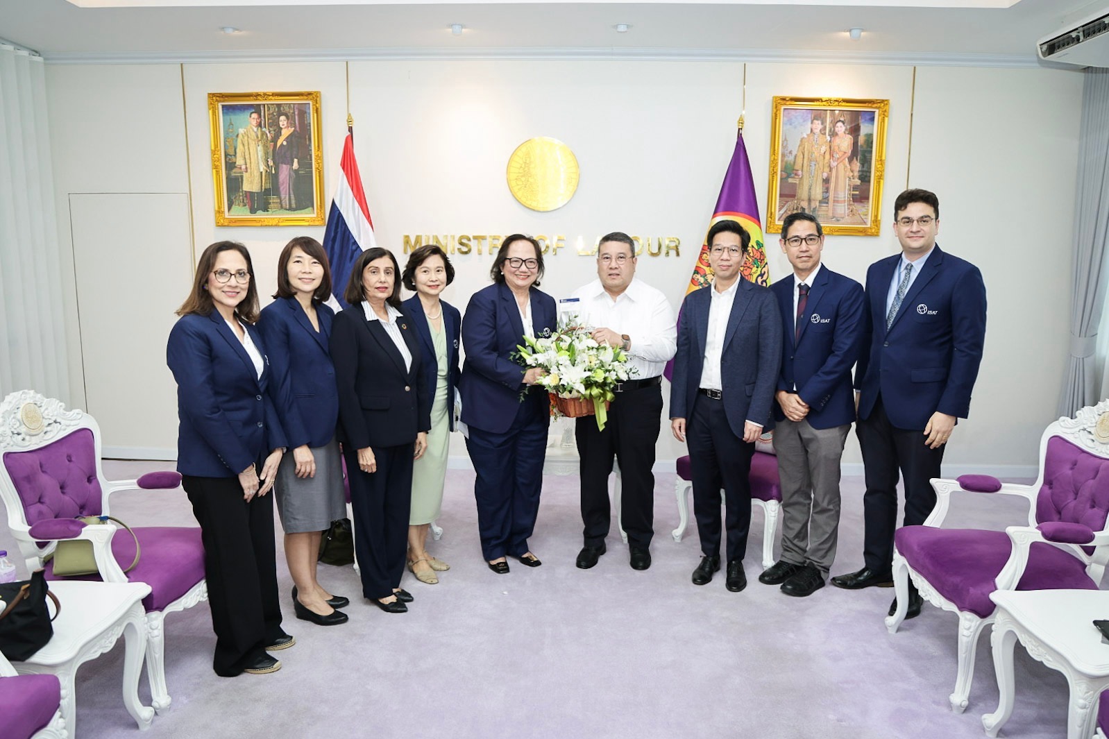 วันที่ 29 เมษายน 2569 เวลา 13.30 น. นายสุรชาติ เทียนทอง เลขานุการรัฐมนตรีว่าการกระทรวงแรงงาน พร้อมด้วย พันตำรวจโท วรรณพงษ์ คชรักษ์ ปลัดกระทรวงแรงงาน ให้การต้อนรับ นางอุษา สมบูรณ์ นายกสมาคมโรงเรียนนานาชาติแห่งประเทศไทย (ISAT) และคณะกรรมการสมาคมฯ ในโอกาสเข้าพบเพื่อหารือแนวทางการแก้ไขปัญหาและอุปสรรคจากการใช้งานระบบใบอนุญาตทำงานแบบอิเล็กทรอนิกส์ หรือ e-Work Permit สำหรับครูและบุคลากรทางการศึกษาชาวต่างชาติที่เข้ามาทำงานในประเทศไทย ณ ห้องรับรองปลัดกระทรวงแรงงาน ชั้น 7 อาคารกระทรวงแรงงาน