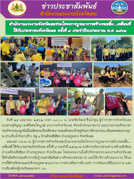 cสำนักงานแรงงานจังหวัดเลยร่วมโครงการบูรณาการสร้างรอยยิ้ม…เคลื่อนที่ให้กับประชาชนจังหวัดเลย ครั้งที่ 7 ประจำปีงบประมาณ พ.ศ. 2562