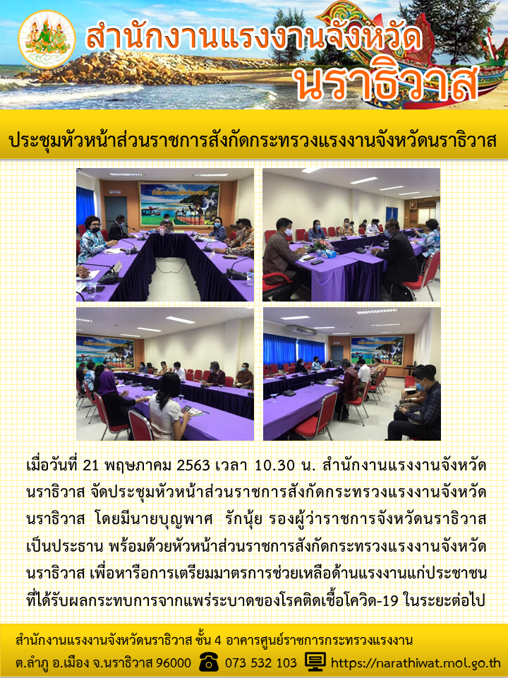 สำนักงานแรงงานจังหวัดนราธิวาส จัดประชุมหัวหน้าส่วนราชการสังกัดกระทรวงแรงงานจังหวัดนราธิวาส