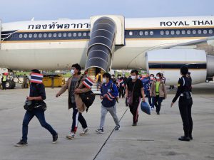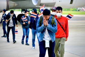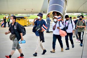 This is the fourth group of Thai workers who reported their intentions to return to the Embassy. They arrived at Military Airport 2, Wing 6, Thailand, at 6.48 hours. Thai fund workers can submit supporting documents to receive benefits from the fund at the provincial employment office in their hometowns.