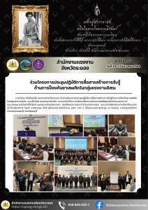 แรงงานจังหวัดระยอง เข้าร่วมโครงการประชุมปฏิบัติการสื่อสารสร้างการรับรู้ด้านการป้องกันยาเสพติดในกลุ่มแรงงานอิสระ