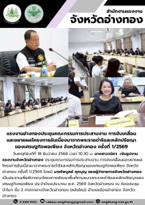 แรงงานอ่างทองประชุมคณะกรรมการประสานงาน การขับเคลื่อน และขยายผลโครงการอันเนื่องมาจากพระราชดำริและหลักปรัชญา ของเศรษฐกิจพอเพียง จังหวัดอ่างทอง ครั้งที่ 1/2569
