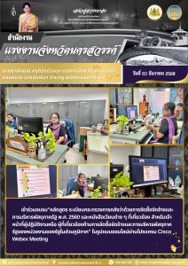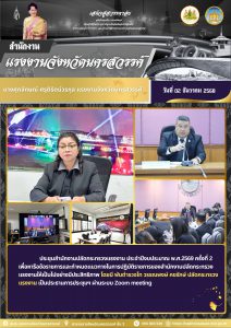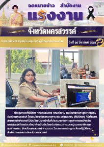 วันที่ 2 ธันวาคม 2568 นางศุภลักษณ์ ศรุติรัตน์วรกุล แรงงานจังหวัดนครสวรรค์ ประชุมสำนักงานปลัดกระทรวงแรงงาน ประจำปี งบประมาณ พ.ศ.2569 ครั้งที่ 2 เพื่อหารือข้อราชการและกำหนดแนวทางในการปฏิบัติราชการของสำนักงานปลัดกระทรวงแรงงานให้เป็นไป อย่างมีประสิทธิภาพ โดยมี พันตำรวจโท วรรณพงษ์ คชรักษ์ ปลัดกระทรวงแรงงาน เป็นประธานการประชุมฯ ผ่านระบบ Zoom meeting