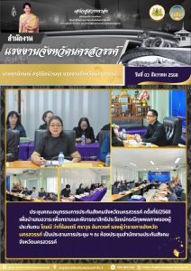 วันที่ 4 ธันวาคม 2568 นางศุภลักษณ์ ศรุติรัตน์วรกุล แรงงานจังหวัดนครสวรรค์ ประชุมคณะกรรมการขับเคลื่อนโครงการเพิ่มทักษะด้านอาชีพแก่นักเรียนที่ไม่ได้เรียนต่อหลังจบการศึกษาภาคบังคับของจังหวัดนครสวรรค์ ครั้งที่ 1/2568 เพื่อพิจารณาปฏิทินการดำเนินการปีงบประมาณพ.ศ. 2569 เห็นชอบหลักสูตรที่จะเปิดอบรม มอบหมายภารกิจให้ผู้เกี่ยวข้อง โดยมี ว่าที่ร้อยตรี ศราวุธ จันทวงศ์ รองผู้ว่าราชการจังหวัดนครสวรรค์ เป็นประธานการประชุม ฯ ณ ห้องประชุมสำนักงานประกันสังคมจังหวัดนครสวรรค์
