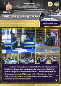 วันที่ 3 ธันวาคม 2568 นางศุภลักษณ์ ศรุติรัตน์วรกุล แรงงานจังหวัดนครสวรรค์ ประชุมคณะอนุกรรมการประกันสังคม จังหวัดนครสวรรค์ ครั้งที่6/2568 เพื่อนำเสนอวาระเพื่อทราบ และพิจารณาสิทธิประโยชน์กรณีทุพพลภาพของผู้ประกันตน โดยมี ว่าที่ร้อยตรี ศราวุธ จันทวงศ์ รองผู้ว่าราชการจังหวัดนครสวรรค์ เป็นประธานการประชุม ฯ ณ ห้องประชุมสำนักงานประกันสังคมจังหวัดนครสวรรค์