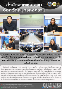 แรงงานสมุทรสงคราม ร่วมประชุมคณะกรรมการประสานงานการขับเคลื่อนและขยายผลโครงการอันเนื่องมาจากพระราชดำริและหลักปรัชญาของเศรษฐกิจพอเพียงจังหวัดสมุทรสงคราม ครั้งที่ 1/2568