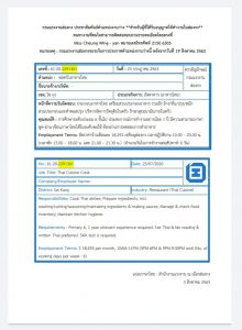 กรมแรงงานฮ่องกง แจ้งประชาสัมพันธ์ตำแหน่งงานว่าง