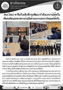 สนร.ไทเป หารือกับอธิบดีกรมพัฒนากำลังแรงงานไต้หวันเพื่อส่งเสริมและขยายความร่วมมือด้านแรงงานระหว่างไทยและไต้หวัน
