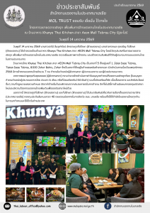 สนร.มาเลเซีย-โครงการขยายตลาดเชิกรุก เพื่อเพิ่มการจ้างแรงงานไทยในประเทศมาเลเซีย ณ ร้านอาหาร Khunya Thai Kitchen สาขา Aeon Mall Tebrau City รัฐยะโฮร์