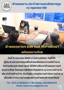 ฝ่ายแรงงาน ประจำสถานเอกอัครราชทูต ณ กรุงเทลอาวีฟ ให้คำปรึกษาแก่แรงงานไทย