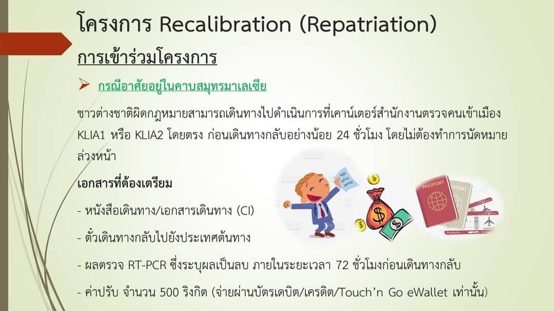 ประกาศขยายเวลาการดำเนินโครงการ Recalibration Program (Repatriation) หรือ โครงการส่งคนต่างชาติผิดกฎหมายเดินทางกลับประเทศ ออกไปจนถึง 30 มิถุนายน 2565