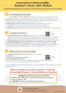 มาตรการเดินทางเข้าประเทศญี่ปุ่น ตั้งแต่วันที่ 1 มีนาคม 2565 เป็นต้นไป สำหรับผู้ฝึกปฏิบัติงานด้านเทคนิคและแรงงานไทยที่จะเดินทางมาฝึกปฏิบัติงาน/ทำงานในประเทศญี่ปุ่น