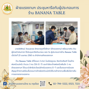 ฝ่ายเเรงงานฯ ประชุมหารือกับผู้ประกอบการร้าน BANANA TABLE