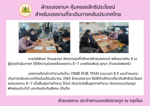 ฝ่ายเเรงงานฯ คุ้มครองสิทธิประโยชน์สำหรับเเรงงานที่จะเดินทางกลับประเทศไทย