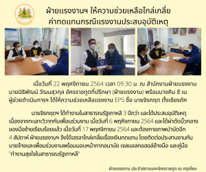 ฝ่ายเเรงงานฯ ให้ความช่วยเหลือไกล่เกลี่ยค่าทดเเทนกรณีเเรงงานประสบอุบัติเหตุ