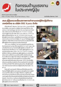 สนร.ญี่ปุ่นตรวจเยี่ยมสภาพการทำงานของผู้ฝึกปฏิบัติงานเทคนิคไทย ณ บริษัท BRE Kanto จำกัด