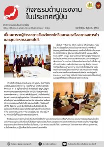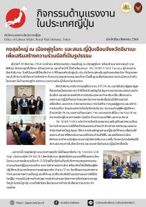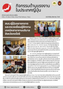 สนร.ญี่ปุ่นหารือด้านการขยายตลาดแรงงานและตรวจเยี่ยมผู้ฝึกปฏิบัติงานเทคนิคไทย ณ บริษัท Tsukasa จำกัด