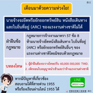 สนร.เกาสง ประชาสัมพันธ์ให้แรงงานเก็บหนังสือเดินทางและใบถิ่นที่อยู่(ARC) เพื่อปฏิบัติตามกฎหมายของไต้หวัน