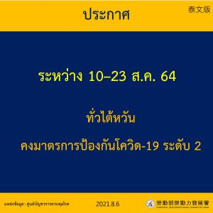 ไต้หวันประกาศขยายการแจ้งเตือนสถานการณ์โควิด-19 ระดับ 2 (10 – 23 ส.ค. 64)