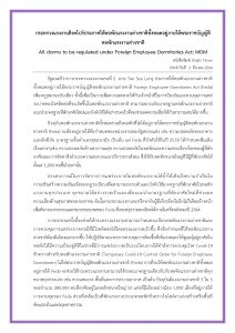 กระทรวงแรงงานสิงคโปร์ประกาศให้หอพักแรงงานต่างชาติทั้งหมดอยู่ภายใต้พระราชบัญญัติหอพักแรงงานต่างชาติ