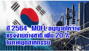 สาธารณรัฐเกาหลี ได้ประกาศมติของคณะกรรมการการจ้างแรงงานต่างชาติ ครั้งที่ 28 ที่เห็นชอบปี 2564 MOEL อนุญาตให้จ้างแรงงานต่างชาติ เพิ่ม 20 % ในภาคอุตสาหกรรม