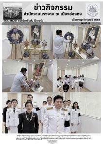 สำนักแรงงาน ณ เมืองฮ่องกง เข้าร่วมพิธีวางพวงมาลาถวายราชสักการะหน้าพระบรมฉายาลักษณ์พระบาทสมเด็จพระมงกุฎเกล้าเจ้าอยู่หัว เนื่องในโอกาสวันสวรรคตครับ 100 ปี และพิธิวางพุ่มดอกไม้ถวายสักการะหน้าพระรูปสมเด็จพระเจ้าภคินีเธอ เจ้าฟ้าเพชรรัตนราชสุดาสิริโสภาพัณณวดี เนื่องในโอกาสวันประสูติครบ 100 ปี ณ ที่ทำการสถานกงสุลใหญ่ ณ เมืองฮ่องกงานกงสุล