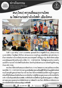 สนร.ไทเป ตรวจเยี่ยมแรงงานไทย ณ ไซต์งานก่อสร้างโรงไฟฟ้า เมืองไทจง