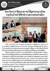สนร.ไทเป หารือแนวทางแก้ปัญหาแรงงานไทย ร่วมกับเจ้าหน้าที่สำนักงานตรวจคนเข้าเมือง