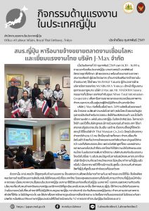 พบปะหารือกับนายจ้างเพื่อขยายตลาดแรงงานสาขาเชื่อมโลหะและตรวจเยี่ยมแรงงานไทยบริษัท J-Max จำกัด