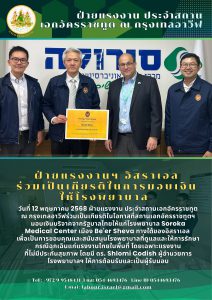 ฝ่ายแรงงาน ประจำสถานเอกอัครราชทูต ณ กรุงเทลอาวีฟ ร่วมเป็นเกียรติในการมอบเงินให้โรงพยาบาล