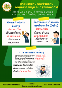 ผลการปฏิบัติงานให้ความช่วยเหลือแรงงาน ประจำเดือนเมษายน 2568 ของฝ่ายแรงงาน ประจำสถานเอกอัครราชทูต ณ กรุงเทลอาวีฟ