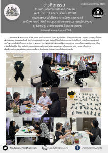 ฝ่ายแรงงาน ประจำ สถานเอกอัครราชทูต ณ กรุงเทลอาวีฟ ร่วมกับชุมชนไทยในกรุงเทลอาวีฟ จัดพิธีถวายความอาลัยสมเด็จพระนางเจ้าสิริกิติ์ พระบรมราชินีนาถ พระบรมราชชนนีพันปีหลวง
