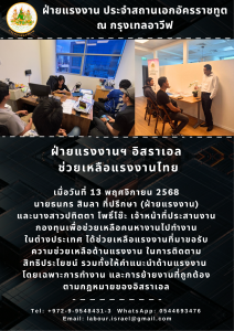 ฝ่ายแรงงาน ประจำสถานเอกอัครราชทูต ณ กรุงเทลอาวีฟ ช่วยเหลือแรงงานไทย