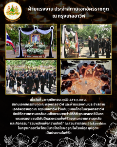 ฝ่ายแรงงาน ประจำสถานเอกอัครราชทูต ณ กรุงเทลอาวีฟ เข้าร่วมพิธีบำเพ็ญกุศลทักษิณานุประทานอุทิศถวายพระราชกุศลแด่สมเด็จพระนางเจ้าสิริกิติ์ พระบรมราชินีนาถ พระบรมราชชนนีพันปีหลวง เนื่องในวันครบปัณรสมวาร (15 วัน) ของการเสด็จสวรรคต ณ ทำเนียบเอกอัครราชทูตฯ