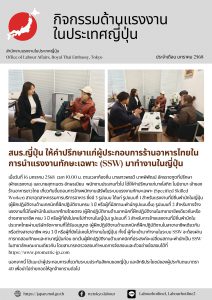 อัครราชทูตที่ปรึกษา (ฝ่ายแรงงาน) ให้คำแนะนำแก่ผู้ประกอบการร้านอาหารไทยในประเทศญี่ปุ่นสำหรับการจ้างงานแรงงานทักษะเฉพาะ