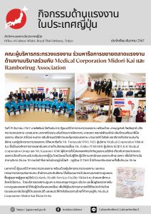 รัฐมนตรีว่าการกระทรวงแรงงาน (นายพิพัฒน์ รัชกิจประการ) และคณะผู้บริหารระดับสูงกระทรวงแรงงานหารือกับผู้บริหาร Medical Corporation Midori-Kai เพื่อขยายตลาดแรงงานด้านบริบาล